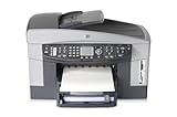 Shift your office into high gear with the HP OfficeJet 7410—built-in wireless and wired office networking, remote printing from your notebook to your all-in-one and camera phone printing. Work more efficiently with breakthrough performance, auto document feeder and copy collating, two-sided print, fax, copy and scan, and 400-sheet total paper capacity. Copy and scan up to legal size. Make short work of tight deadlines with print and copy speeds up to 30 ppm black, up to 20 ppm color, and do it with style up to 4,800-optimized dpi color and laser-quality text, or add 6-ink color. Easily view photo editing options on a 2.5-inch display, and enhance the power of flyers, brochures and other projects with precision copying, powerful black and color faxing and outstanding 2,400 x 4,800-dpi optical resolution scanning. Print more pages using higher volume black and tri-color ink cartridges, and print photos that resist fading longer than traditionally processed photos. Produces color prints, copies, scans, and faxes Up to 30 ppm print speed, up to 4,800 x 1,200 dpi resolution Up to 30 cpm copy speed, reduces and enlarges 25 to 400% 2,400 x 4,800 dpi scan resolution, 48-bit color Ethernet, USB, PictBridge, and wireless 802.11 g/b interfaces