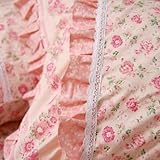 This chic pretty rose 4pc bedding set includes one king bedskirt, one king duvet cover and two matching standard pillow sharms.The set is very elegant and delicate with a little bit of romantic feeling. With lace decorated with the bedding. Fabric: 100% Cotton Size: 71"x79"+16"(bedskirt) 87"x95"xcm(duvet cover) 20"x30"(sharms) Machine Washable weight:4kg. Fabric: 100% Cotton Machine Washable Size: 71"x79"+16"(bedskirt) 87"x95"xcm(duvet cover) 20"x30"(sharms)18"x18"(cushion cover)